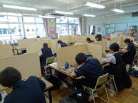 地震発生を告げる放送が入ると、どのクラスも一斉に避難行動(机の下に入り身を守る)をとり、揺れが収まって次の指示が出るのを静かに待っていました。