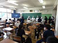 地震発生を告げる放送が入ると、どのクラスも一斉に避難行動(机の下に入り身を守る)をとり、揺れが収まって次の指示が出るのを静かに待っていました。