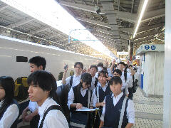 お昼のお弁当は、新幹線車内(10:20~)か、奈良に向かうバスの中で食べることになっていますが、すでにお腹が空いている人もいるようで、「お昼まだ~?」という声が聞こえてきます。