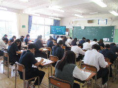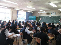 3年生の英語の授業では、まとまりのある英文を読んで内容を読み取る練習をしました。