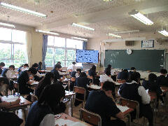 1年生が英語の授業で「Three Hints Game」を行いました。