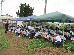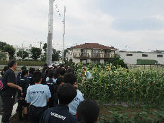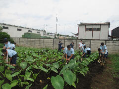 火曜日の農園活動で草取りを終え、トウモロコシには支柱も立てて、今、九中農園はこんな感じです。