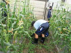 また、時間の都合でこの日に収穫できなかったトウモロコシは、10日(木)の帰りにみんなで畑に行って収穫しました。
