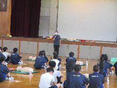 最初に講師の立川消防署の方からお話を聞き、その後、急病人などを発見したときの行動や心肺蘇生法などを実際に体験しながら学びました。