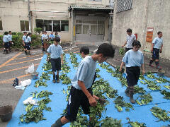 8日(火)、これまで育ててきた枝豆を収穫しました。リアカー1台に乗せきれないほどの豊作で、みんなで手分けして学校まで持ち帰ってきました。