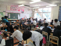 2年生の国語の授業で、学校図書館支援指導員の方のご協力により、「コトバト」を行いました。