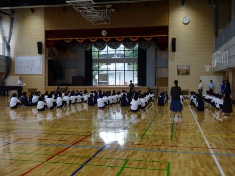 10月13日(金)⑥校時に後期生徒総会を行いました。後期最初の校歌を歌って九中生の証を確認したあと、前期活動報告、後期活動方針・活動内容の提案と承認を行い、無事に承認されました。旧生徒会本部役員と前期各種委員会のみなさん、これまでご苦労様でした。新生徒会本部役員と後期各種委員会のみなさん、今日が終わりではなく始まりです。これからの活躍を期待しています。