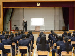 授業の最初に、先生から、前回までの授業で見られた良い取り組みや気付きの紹介がありました。