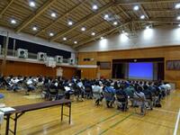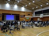 最初に体育館で全体保護者会、その後、学年ごとの会場に分かれて学年保護者会、最後に学級懇談を行いました。