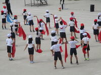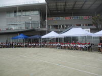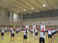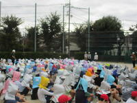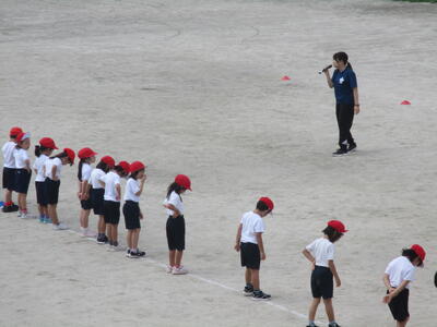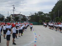 運動会の開会式と閉校式の並び方、1年生の代表児童の発表、ラジオ体操などを練習しました。