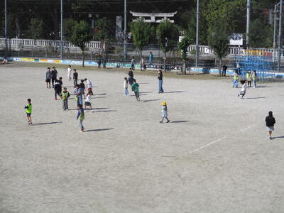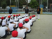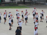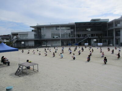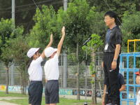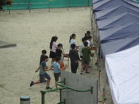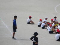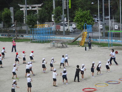 水分補給をしたり休憩をとったりしながら、子どもたちは元気に運動しています。