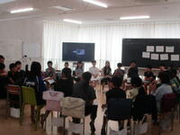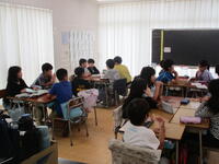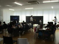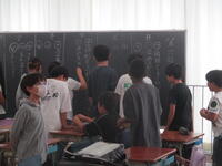 研究授業後は、教職員による研究協議会を開き、授業でどのように思考力を向上させるかについて協議しました。