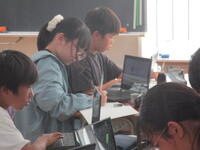また、資料は各自のクロームブックに提示され、気になる部分を拡大して確認したり、友達と共有したりしながら活用していました。