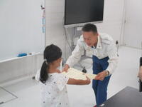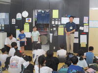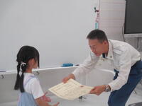 続いて、立川消防署の職員の方々にお越しいただき、1学期に1,2年生とあおぞら学級が参加した消防写生会の表彰式を行いました。