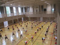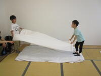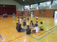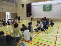 体育館では、係の子どもたちが用意したレクリエーションにも取り組みました。