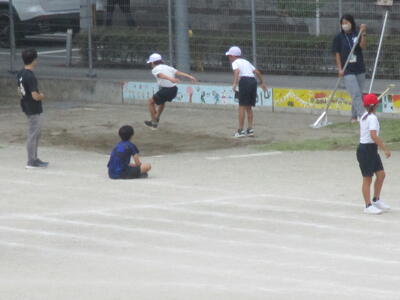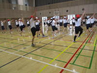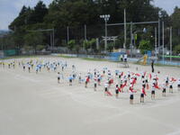 続いて、1年生、2年生、4年生は校庭で表現種目の練習に取り組みました。