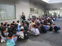 子どもたちは、先生の指示を聞くこと、落ち着いて身を守る行動をとることを意識して参加することができました。