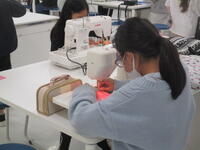 役員の方々が用意してくださった材料を使い、ワッペンを貼り付けてオリジナル巾着を作りました。