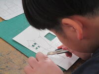 下書きが終わった人から、画用紙をカッターで切って型紙をつくっていました。