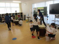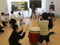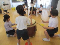 あおぞら学級では、音楽の時間に和太鼓に取り組んでいました。
