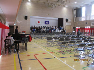 6年生は、卒業式練習に取り組んでいます。