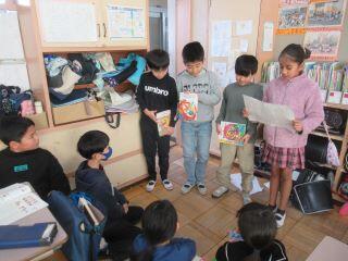 はじめに1年生と3年生の図書室での様子です。1年生は面白そうな本を一生懸命に探していました。私もある男の子から、とてもおもしろい「すべり台」の絵本を教えてもらいました。3年生は、図書支援員の先生の「この本は誰の伝記でしょう」というクイズに挑戦していました。わずかのヒントで「杉原千畝さん」「や「津田梅子さん」の名前(正解)がすぐに答えられてしまうことにビックリしました!