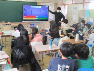 5年生は家庭科の授業で学習した内容を、クイズ形式の問題で復習していました。また6年生は今日も小学校で学習した算数の学習内容を振り返って復習していました。中学校への進学を前に、意欲的な学びを続けています。