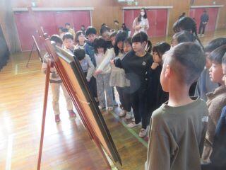 また今週末までが校内書写展となっているため、今日は2年生が校内を回っていろいろな学年の作品を参観していました。