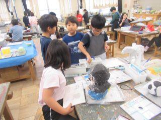 まずは4年生の算数の授業の様子と3年生の図工の授業の様子です。4年生の算数では仮分数と帯分数の学習に取り組んでいました。自分の考え・問題の解き方を友達に上手に伝えていました。3年生の図工では、新聞紙や半紙を使った立体作品づくりに楽しそうに取り組んでいました。