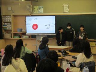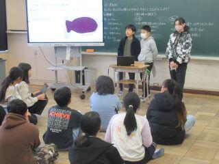 6年生の教室では、立川市民科の学習で取り組んでいるお店や企業と連携した立川産野菜を使った商品やメニューの開発を検討していました。お店の方達にプレゼンする内容をグループごとに発表し合い、助言し合っていました。