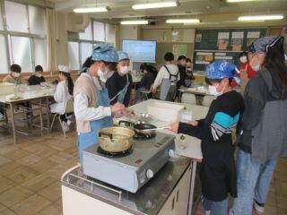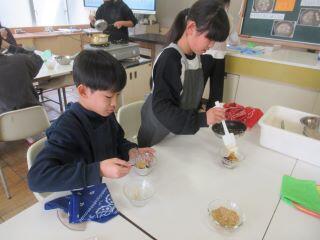 続いて授業の様子です。今日は6年生が、小学校最後の調理実習として「白玉だんご」を作っていました。調理が終わると校長室まで私を呼びに来てくれたので、一緒に食べさせてもらいました。とてもおいしかったです!
