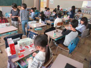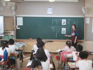3年生の算数の授業は、重さの学習が続いていました。はかりを使っていろいろなものの重さを量っていました。子ども達は興味津々です! 4年生の学級では、書写の授業を行っていました。みんな、お手本をよく見ながら丁寧に書いていました。