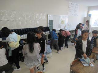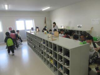 子ども達にとってはじめての校舎、環境なので、始業式後はクラスごとに下駄箱やロッカーなどを丁寧に確認していました。(どこに何があるか校舎内を回って確かめることも行っていました)
