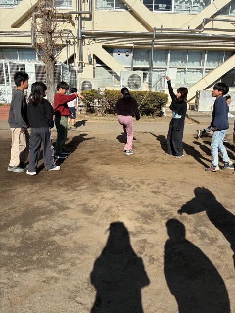 昼休み、校庭を見ていたら、4年生が縄跳びをしていました。