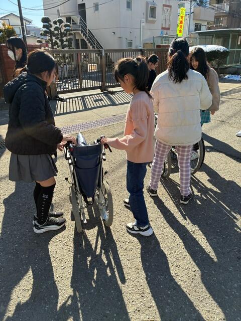 車椅子体験や、白杖体験を通じて、いろいろな世界があること、また実際のお手伝いの仕方などを学びました。