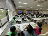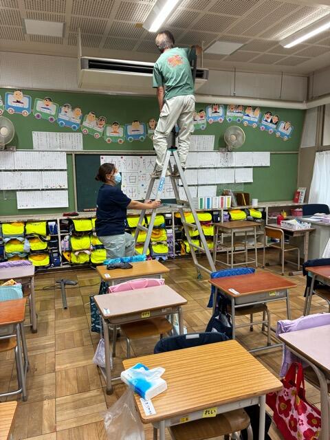 子供たちが運動会の練習をしているときに、用務主事さんが教室のエアコンの掃除をしていました。