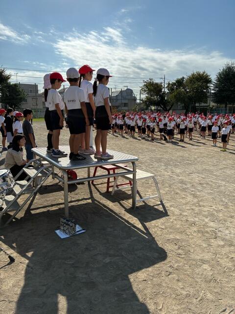 いよいよ来週が運動会です。今日は、全校練習でした。1年生が始めの言葉を言いました。とても堂々と上手でした。