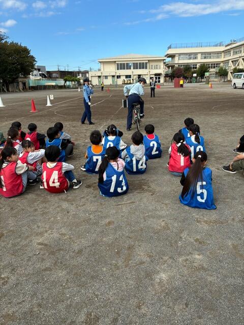 今日は、警察の方と交通安全協会の方、そして保護者の方のご協力をいただいて、3年生の自転車教室が開かれました。