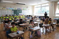 中休みに避難訓練がありました。遊んでいた低学年の児童を6年生が集まり方を教えたり並ばせたりしていました。これまでの高学年の児童が優しく世話をしてくれたことが引き継がれていますね。