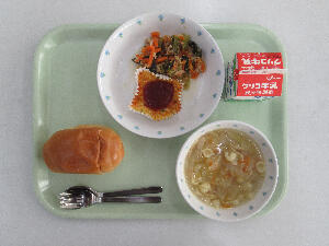 22日は冬至です。冬至とは、1年のうちで最も昼間の時間が短い日のことを言い、かぼちゃを食べて、ゆず湯に入るという風習があります。また、この日を境に太陽が生まれ変わり、運が向いてくると考えられていたことから、「ん」のつく食べ物を食べて、運を呼び込む風習もあります。今日の給食で「ん」のつく食べ物は何かなと考えながら食べてみてください。