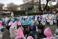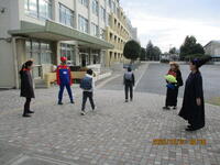 今朝の登校風景です。保護者の有志の方々が、仮装して子供たちを出迎えて下さいました。突然のマリオの登場に、子供たちも大喜びでした。
