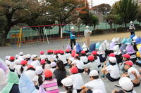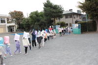月に一度の避難訓練がありました。今回は、いつもとは違い「二次避難場所」まで避難しました。校長先生からお話を聞いて速やかに避難することができました。
