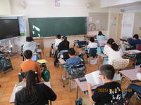 第5・6校時は、6年生が立川第三中学校へ授業体験に行きました。子供たちは、希望の教科の授業を熱心に受けていました。中学校の授業の様子がイメージできたようです。また、中学校での生活やクラブ・委員会活動について三中生が中心になって説明してくれました。
