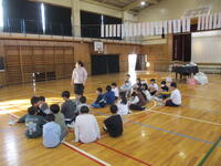 久しぶりに外で、全校朝会ができました。校長先生からは、今週から始まる読書旬間についてお話がありました。また、PTAの方が、ベールマークを集めて頂いたマット、ボールの目録を贈呈してくださいました。保護者の皆様、ご協力ありがとうございました。
