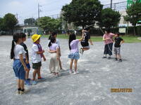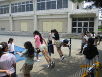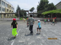 今日は、昼休みになかよし班交流デーがありました。1年生から6年生の子供たちが、たてわりで班をつくり、一緒に遊ぶ活動です。今日も、教室や体育館、校庭に分かれて、6年生を中心に楽しく遊んでいました。校庭で遊ぶグループは、帽子を被り、適宜水分補給をしっかりして、暑さ対策を行いました。