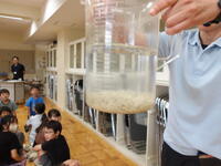 4年生は、立川市民科で取り組んだ「ホタルの飼育」を通して学んだ事を、3年生に発表しました。