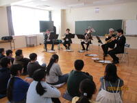 今日は5年生が、立川市地域文化振興財団様より派遣いただいた、東京室内管弦楽団の皆様の金管五重奏を鑑賞しました。奏者が奏でる金管楽器の素敵な音楽に、子供たちは集中して聴き入っていました。素敵な体験の機会を頂き、ありがとうございました。