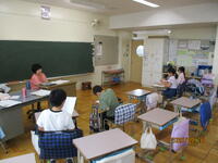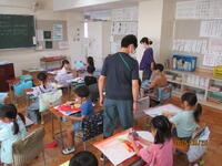 1年生はきれいな色紙を使った作品作りを頑張っていました。6年生は「正直 親切」の価値について、教材文を通して深く考えていました。