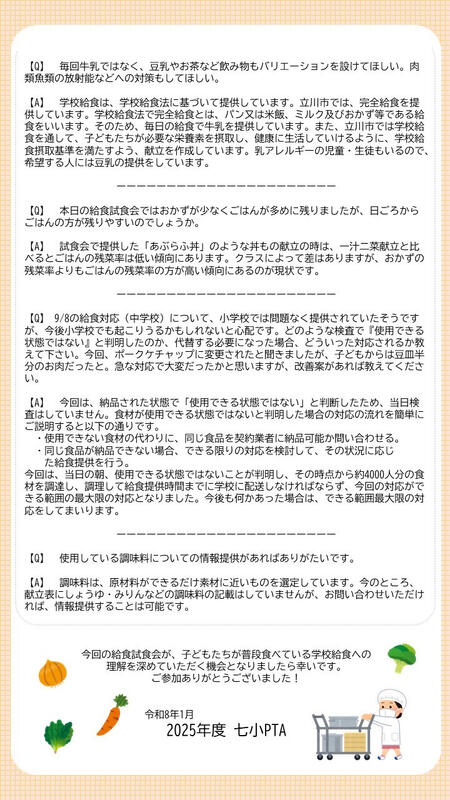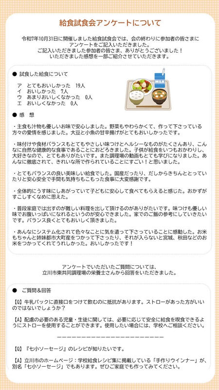 給食試食会アンケート