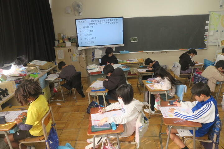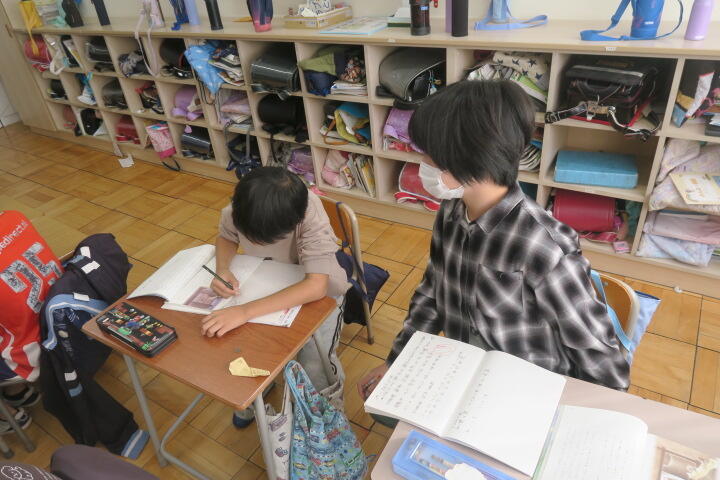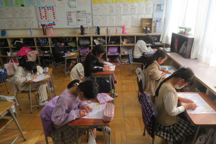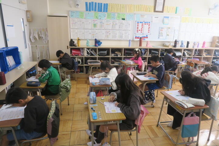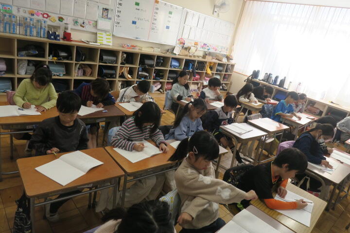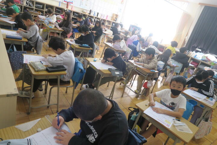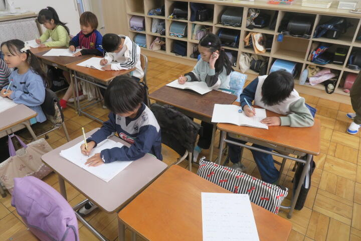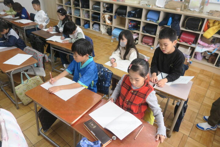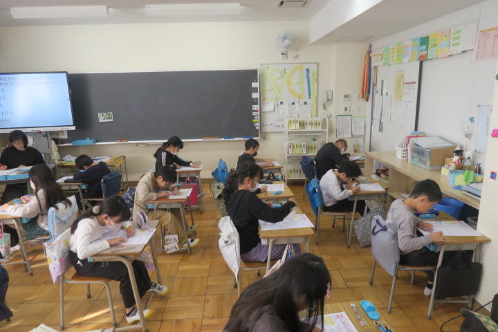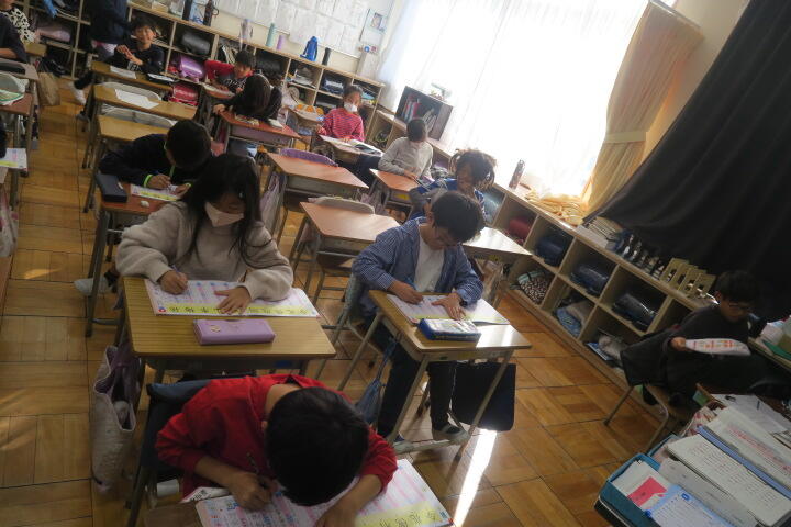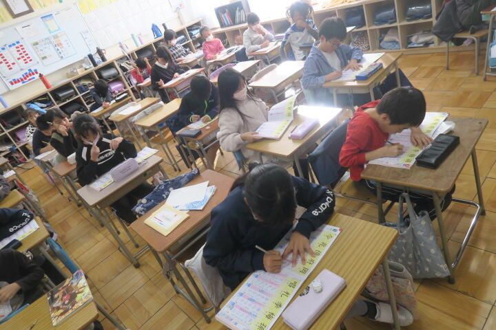 テストが終わった後、間違えやすい漢字の確認をしていました。